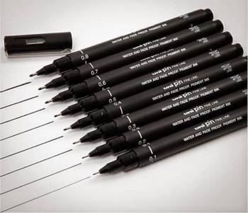 - różne grubości końcówek: kolor tuszu czarny - 0,05 mm, 0,1 mm, 0,2 mm, 0,3 mm, 0,5 mm, 0,8 mm kolor tuszu niebieski, czerwony - 0,1 mm, 0,2 mm, 0,5 mm