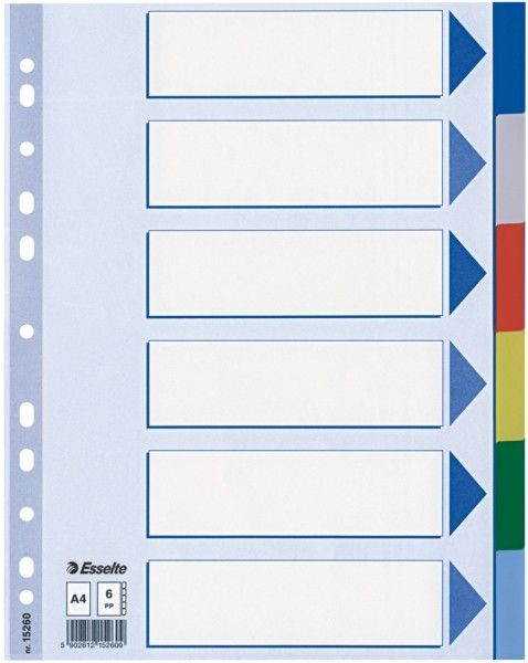 Przekładki plastikowe 6 kartek ESSELTE PP A4 kolorowe