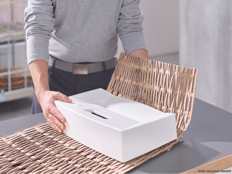 Ta bardzo wydajna maszyna do materiału opakowaniowego w jednym procesie roboczym przetwarza kilka warstw zniszczonego kartonu na maty tapicerskie lub materiał wypełniający. Dzięki kółkom to profesjonalne urządzenie nadaje się do mobilnego i elastycznego zastosowania.Hartowane indukcyjnie wałki tnące z litej stali rozdrabniają też zszywki i spinacze oraz zapewniają długotrwałą eksploatację.