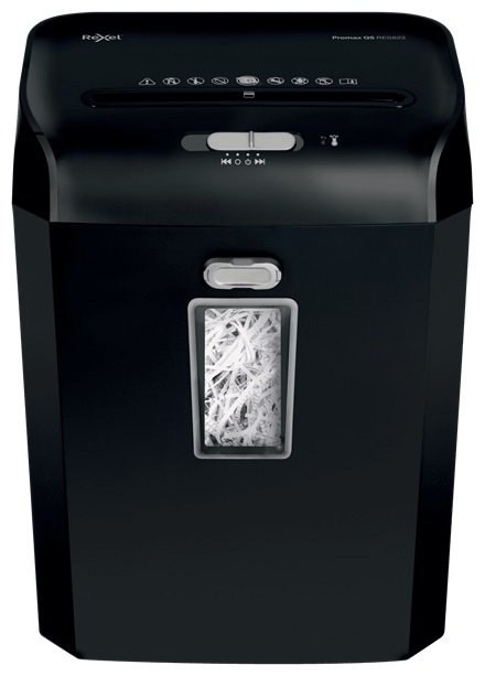 Niszczarka Promax QS REX623 niszczy do 6 kartek (80 gsm) jednocześnie, tnąc je na konfetti o wymiarach 4 x 40 mm, co zapewnia poziom bezpieczeństwa P-4. 23-litrowy pojemnik na ścinki zmieści 222 pocięte kartki A4.