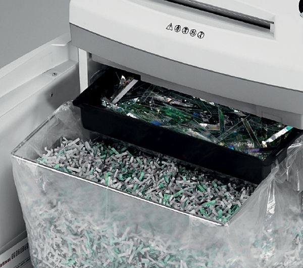 – niszczy dokumenty ze zszywkami, spinaczami, karty kredytowe, dyskietki i płyty CD / DVD