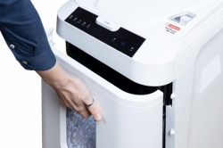 Dzięki naszej w pełni automatycznej niszczarce dokumentów, długie godziny spędzone przy niszczarce to już przeszłość. Intimus AutoShred 180 gwarantuje bezpieczne i w pełni zautomatyzowane niszczenie dokumentów w pakietach nawet do 180 arkuszy. Niszczarka jest szczególnie cicha 58 dB(A) w działaniu, a zintegrowana ochrona przed przegrzaniem i technologia zapobiegająca zacięciom papieru zapewniają długi czas ciągłej pracy – do 120 minut. Niszczarka po zakończeniu pracy automatycznie wyłącza się po 5 minutach bezczynności.